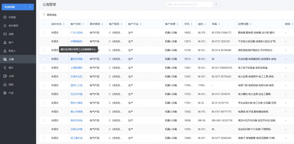 有這樣一個客戶,他公司有客服機器人能自動聯(lián)系客戶,但是現(xiàn)在客戶需要手動去找,所以他需要一個工具能自動爬指定類型的公司客戶,然后添加至他們的CRM系統(tǒng)中,這樣,客服機器人就能主動聯(lián)系這新客戶了。如此一來就能有源源不斷的客戶來找他們公司下訂單了。