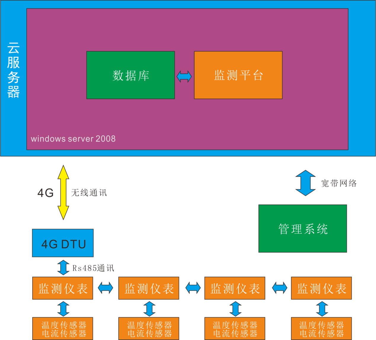 監(jiān)測(cè)儀表采用高精度溫度測(cè)量?jī)x表,精度等級(jí)暫定為0.5%級(jí),并帶有RS485通訊接口。
