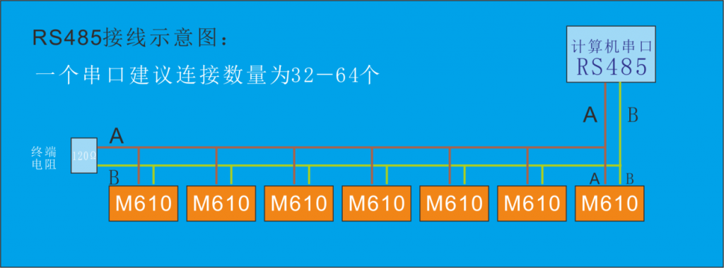 在RS485通信網(wǎng)絡(luò)中一般采用的是主從通信方式,即一個(gè)主機(jī)帶多個(gè)從機(jī)。RS-485接口的最大傳輸距離標(biāo)準(zhǔn)值為4000英尺,實(shí)際上可達(dá) 3000米(理論上的數(shù)據(jù),在實(shí)際操作中,極限距離僅達(dá)1200米左右)。